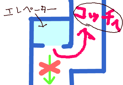 ※ビルの中を写真にとるのはさすがにためらわれたので、へったくそな絵で解説しております。