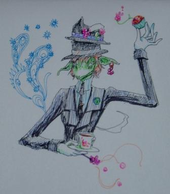 先日UPした帽子屋さんはうろ覚えで描いたせいで、間違いだらけでしたね。ちゃんと原作読んできます。